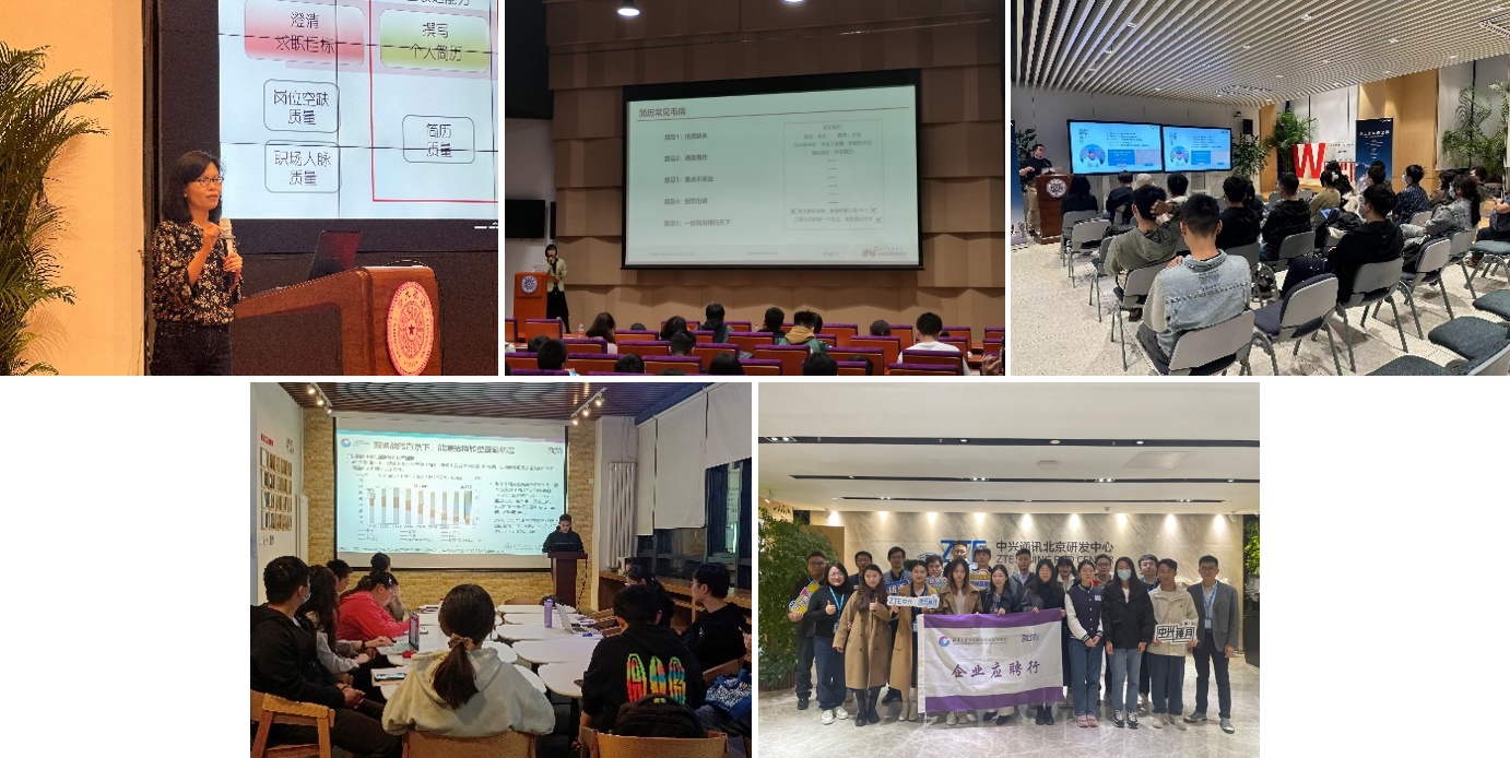 活动期间,学生职业发展指导中心副主任金蕾莅和华为公司资深HR俞婷君分别以简历书写和面试及形象礼仪为主题开设公开课。来自国家发改委能源研究所、中国青年杂志社、中国石化集团、中国航发集团、中国船舶集团、荣耀等10余家重点企事业单位的20余位优秀校友,通过线上线下沙龙等形式分享行业趋势与政策,并介绍工作体验、职业发展等相关情况,有效帮助同学们了解行业前沿动态和单位情况,拓展就业视野。此外,活动充分结合同学实际需求,面向水利系、人文学院、深圳国际研究生院等举办班团宣讲近10场,涵盖简历面试技巧、生涯认知、职业选择及行业分享、就业形势分析等内容。4月以来,职业发展中心积极对接国家电投集团、中兴通讯、华为、阿斯利康、腾讯等重点企事业单位开展“企业开放日”交流活动,实地参观重点实验室和单位展厅,与工作人员座谈交流,掌握就业先机、坚定就业信心。
