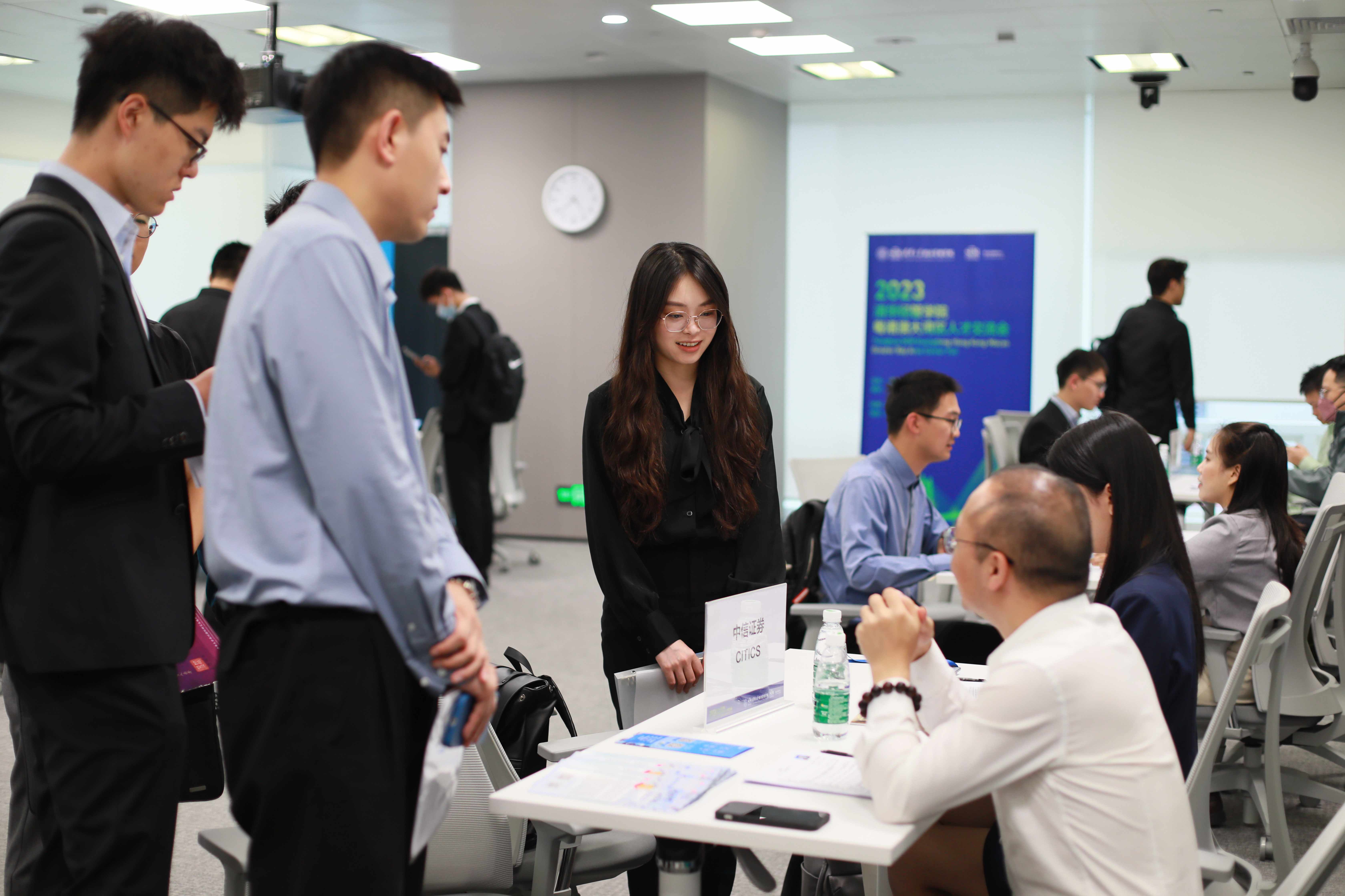 人才交流会主要面向清华经管学院金融硕士学生,同时也对mk手机注册深圳国际研究生院各院系学生开放。参会企业包括中信证券、易方达、华为、腾讯、明阳智能等在内的20家雇主企业,覆盖金融、科技、新能源等多个领域,提供百余个实习岗位。