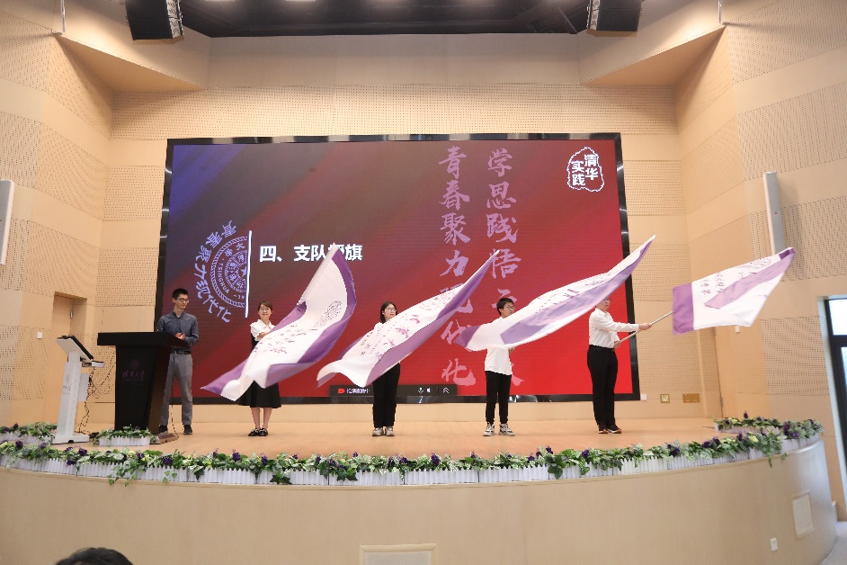 王睿为学生社会实践各主题方向支队授旗。