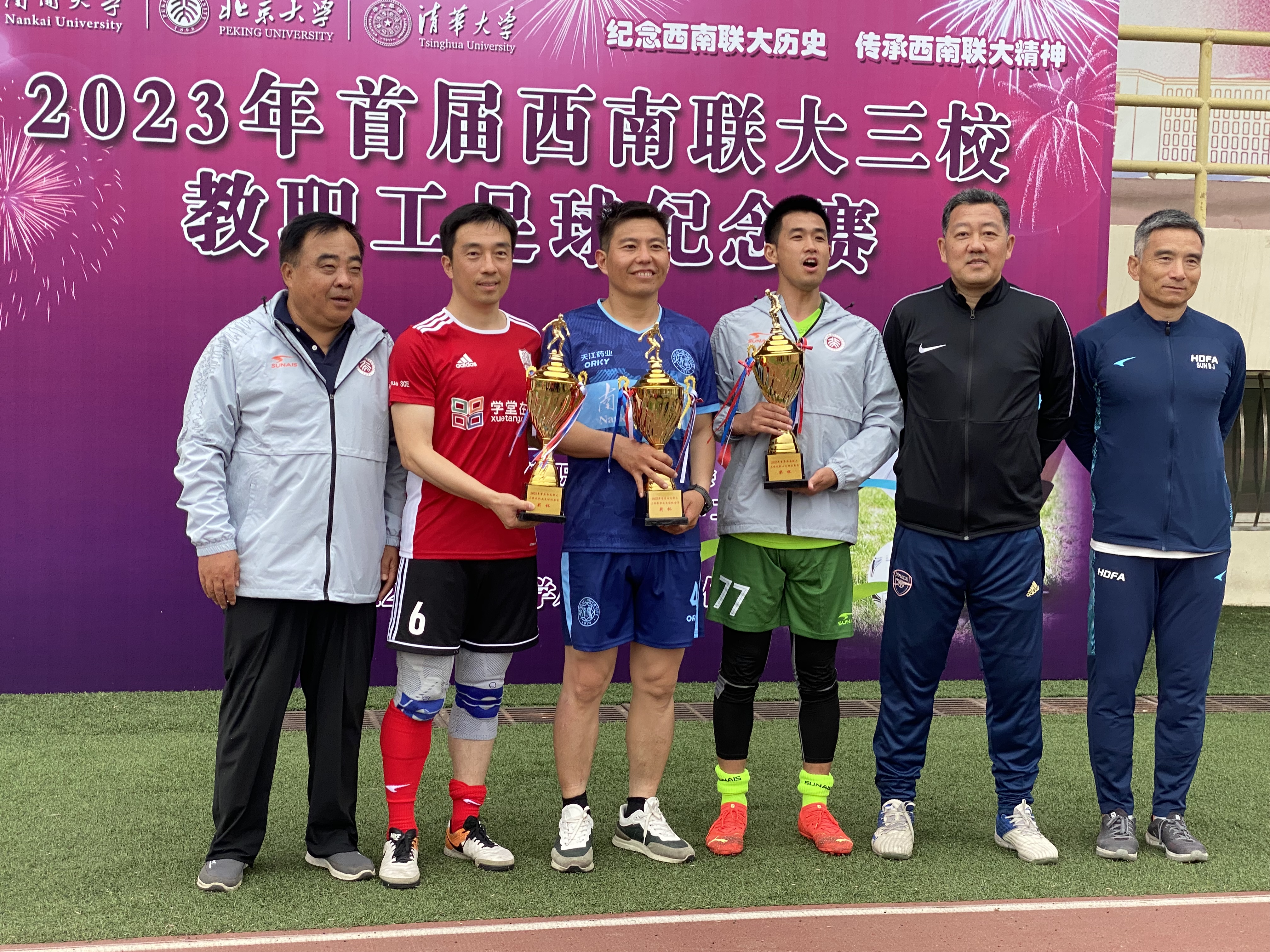 三校代表共同表示,本项活动将持续举办下去,以促进三校教工赓续西南联大的体育精神,加强体育教育和人才培养,聚力建设世界一流大学。比赛结束后,南开大学向第二届主办方北京大学转交了西南联大三校教职工足球纪念赛大旗。