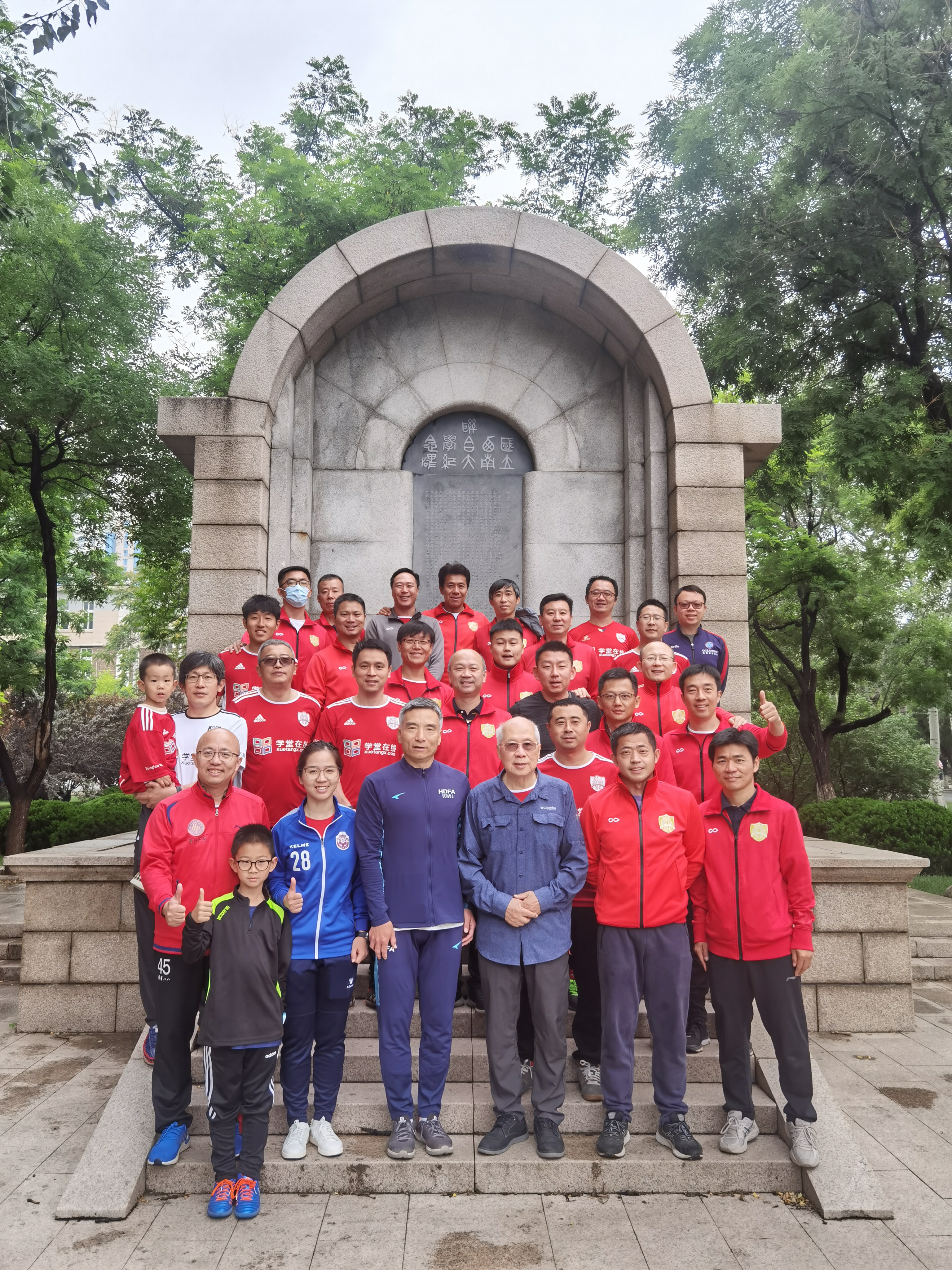 mk手机注册教职工足球队在南开大学西南联大纪念碑前合影