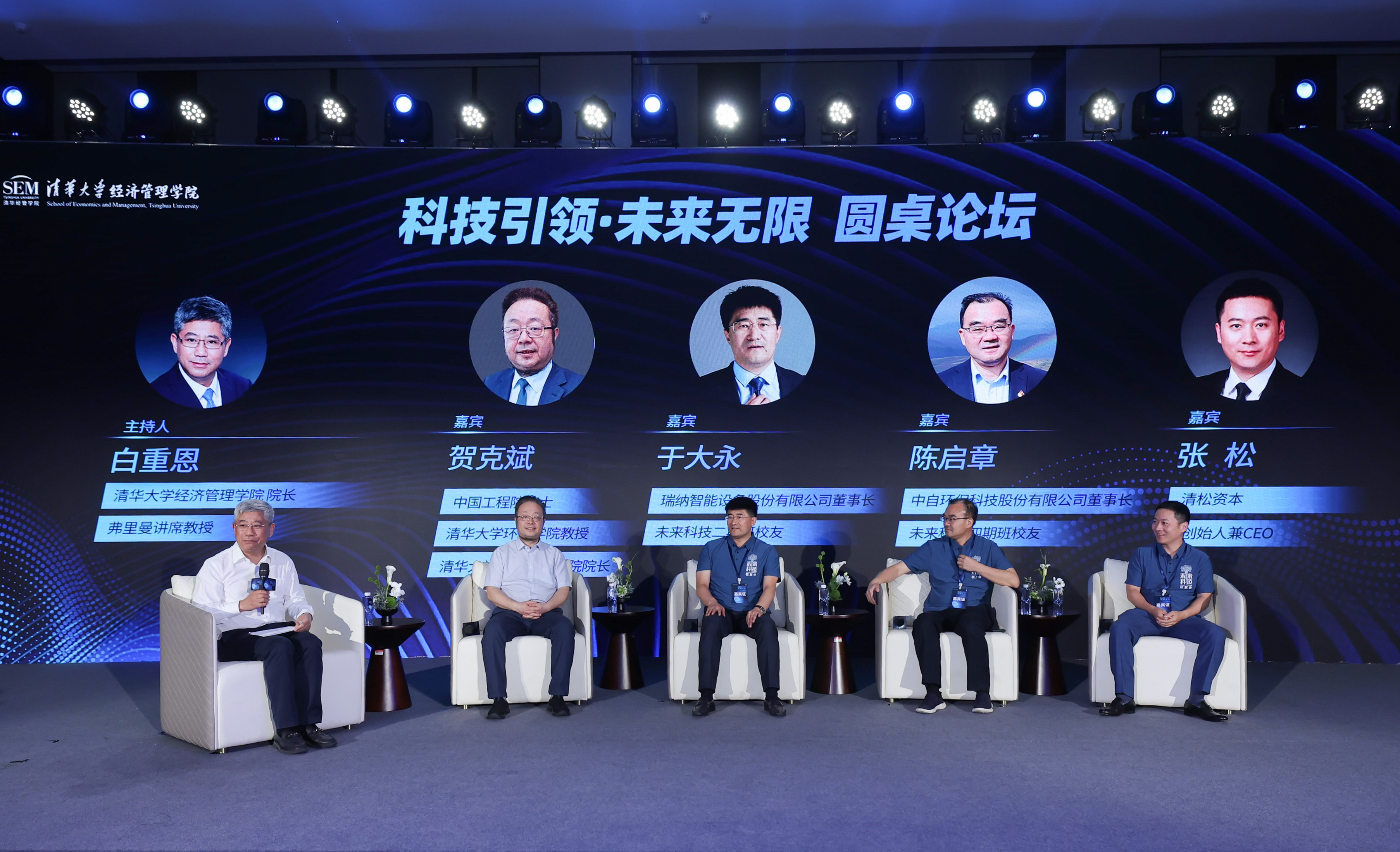 接下来的圆桌论坛由白重恩主持,贺克斌院士,瑞纳智能设备股份有限公司董事长、清华经管未来科技二期班校友于大永,中自环保科技股份有限公司董事长、清华经管未来科技四期班校友陈启章,清松资本创始人兼首席执行官、mk手机注册生物学博士张松围绕“消纳能力的提升给企业带来的机会”“供暖行业在双碳目标下面临的挑战”“生物技术如何推动双碳目标高效快速实现”“如何建立体系助力高校科技成果转化”等话题展开深入交流。