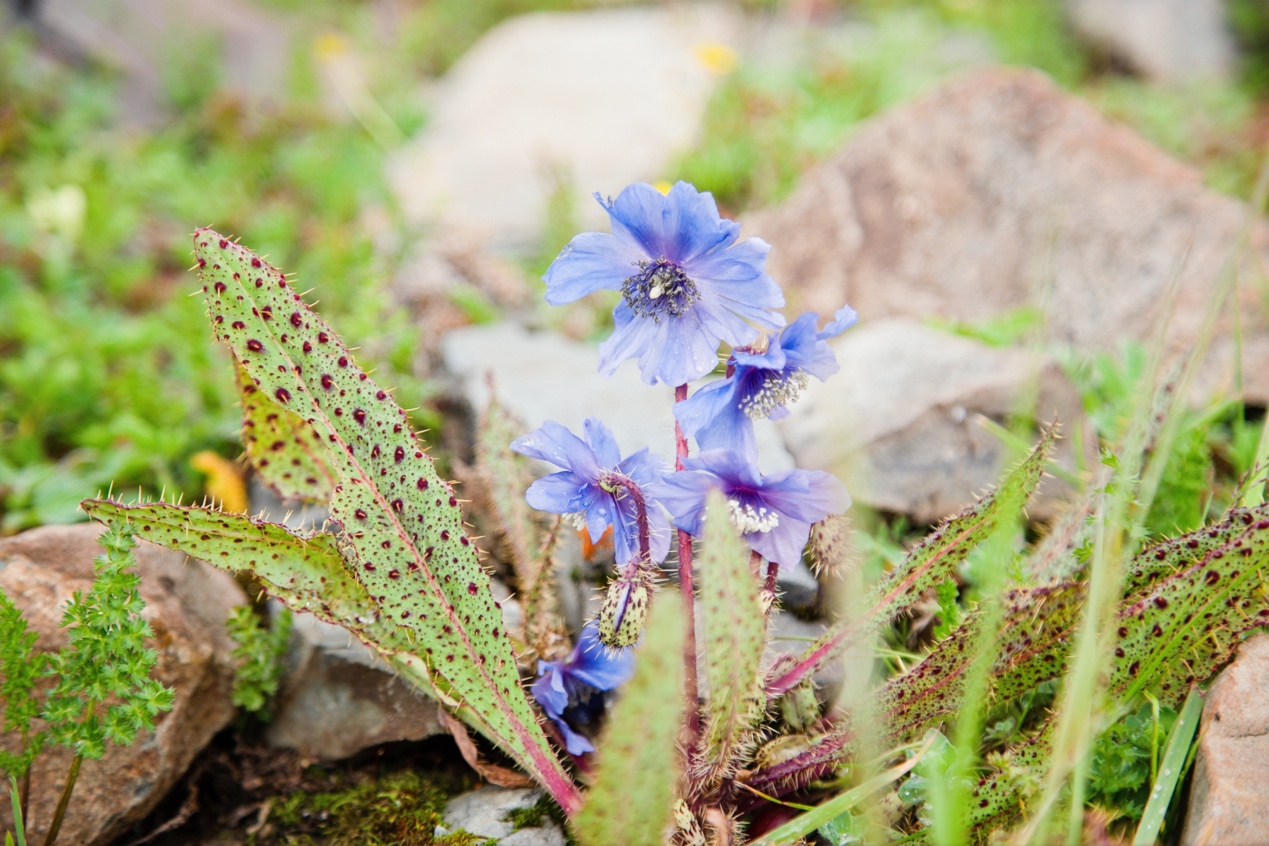 在流石滩上,方晔一行带着同学们辨识和观察野生绿绒蒿植株。绿绒蒿是高原特有珍稀植物,生长于中国横断山-喜马拉雅山海拔3000-4000米以上的流石滩或冰川前沿,因此又被叫做“离天空最近的花朵”。19世纪末20世纪初,绿绒蒿成为了西方“植物猎人”盗采掠夺的热门目标。其中的黄花绿绒蒿,自1931年英国植物猎人在维西富川采集后便消失了踪迹,直到2018年才再度被发现。2021年,方震东老园长带领科考队伍在碧罗雪山采集到黄花绿绒蒿的本种标本,最终正式考证了其物种分类。