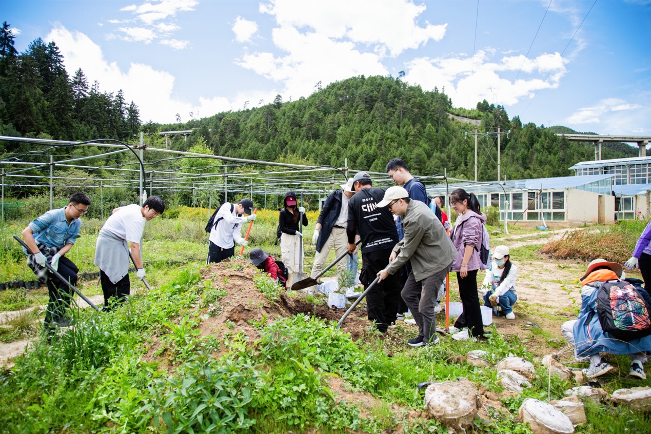 调研团在香格里拉高山植物园参与种植植物幼苗
