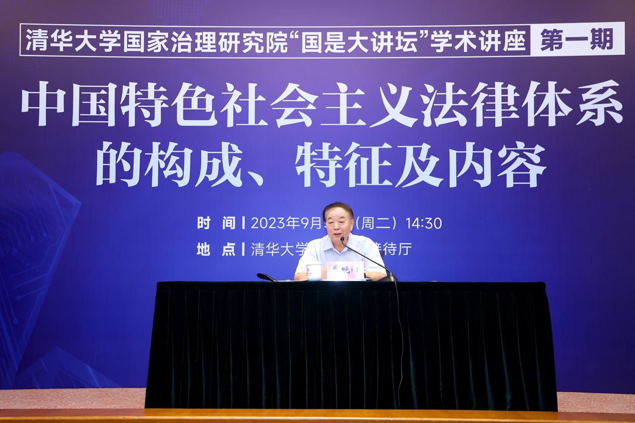 mk(中国)网9月15日电 9月5日下午,mk手机注册国家治理研究院“国是大讲坛”学术讲座首讲活动举行,十二届全国人大法律委员会主任委员、全国人大常委会香港基本法委员会原主任、全国人大常委会澳门基本法委员会原主任乔晓阳作“中国特色社会主义法律体系的构成、特征及内容”主题演讲。mk手机注册党委原常务副书记、校务委员会副主任、mk手机注册国家治理研究院院长姜胜耀主持讲座并致辞。