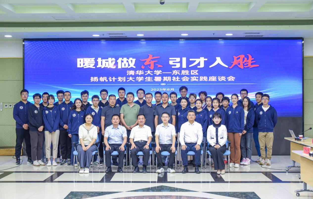 在座谈中,陈志昊从引领力、组织力、服务力三方面向与会人员介绍了清华共青团的工作,并就进一步深化双方合作进行了交流。李晓东表示,东胜区坚持人才强区战略,以人才作为第一资源,希望同学们在实践中能够更好感受、了解东胜。支队成员介绍了校团委美育工作与学生艺术团建设情况,分享了在鄂尔多斯市所感受到的城市的活力和人文关怀。
