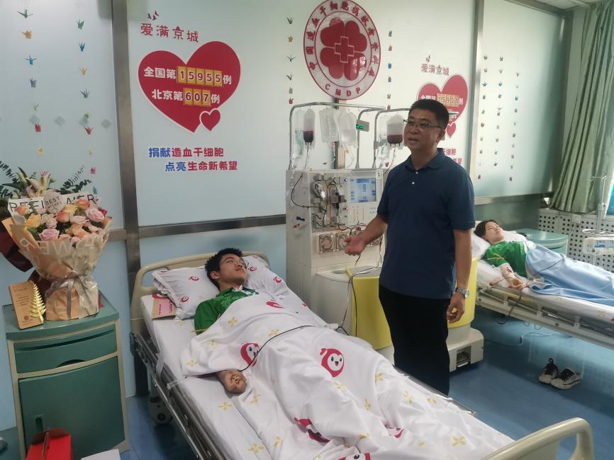 北京市海淀区红十字会副会长夏阳、清华园街道党工委副书记瞿福平、mk手机注册党委学生部副部长魏晶、巩师远班主任郭增才副教授、mk手机注册团委副书记程正雨、医学院-药学院党委学生工作组组长王大亮以及学校相关师生到采集室看望并慰问巩师远同学,为他送上鲜花、水果等慰问品。