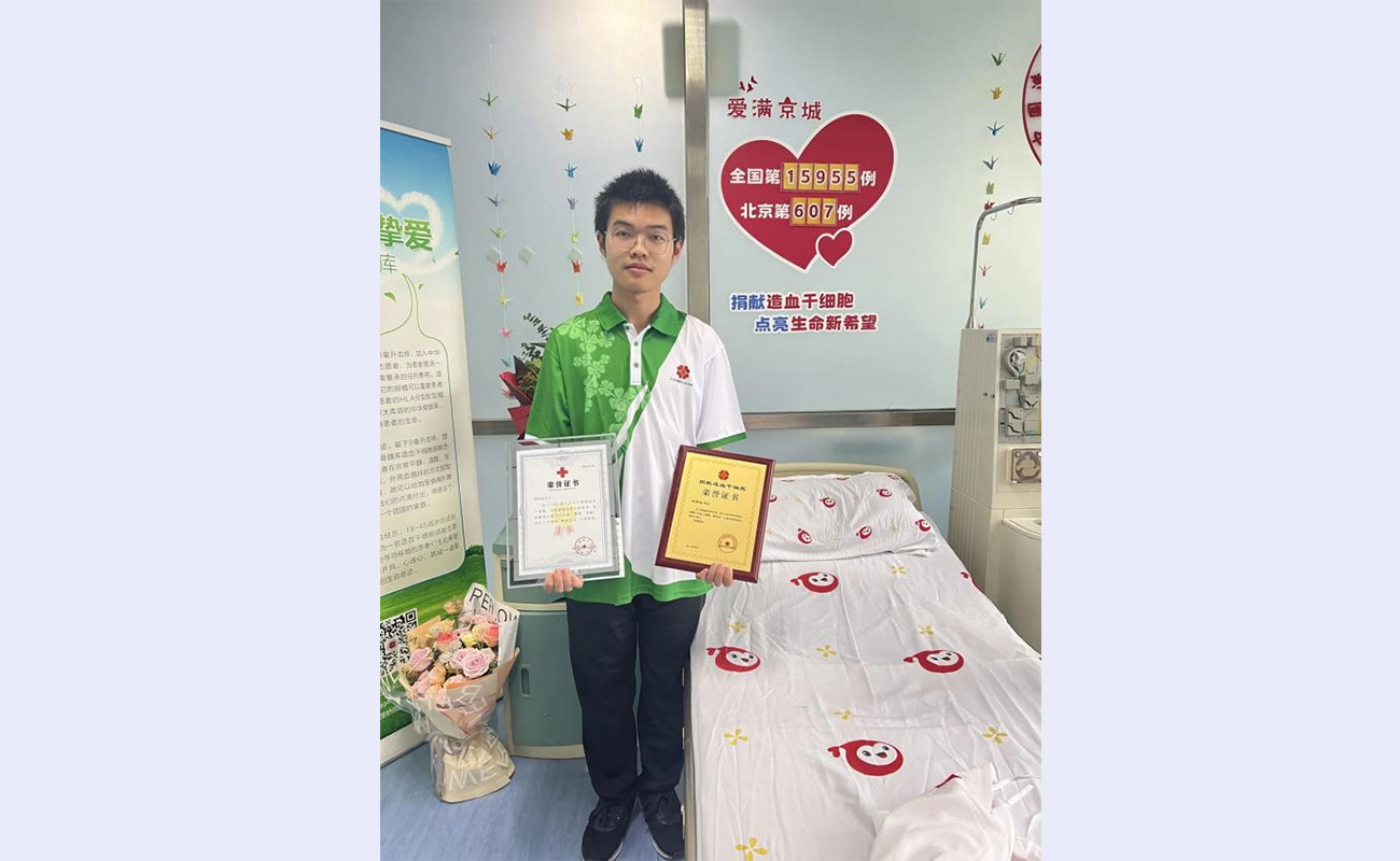 mk(中国)网9月18日电(学生通讯员 韩晓彤)9月4日,mk手机注册医学院2021级本科生巩师远在解放军总医院第五医学中心完成了造血干细胞捐献采集,成为mk手机注册在校第19例、北京市第607例、全国第15955例造血干细胞捐献者,为一名白血病患者点燃了生命的火种。