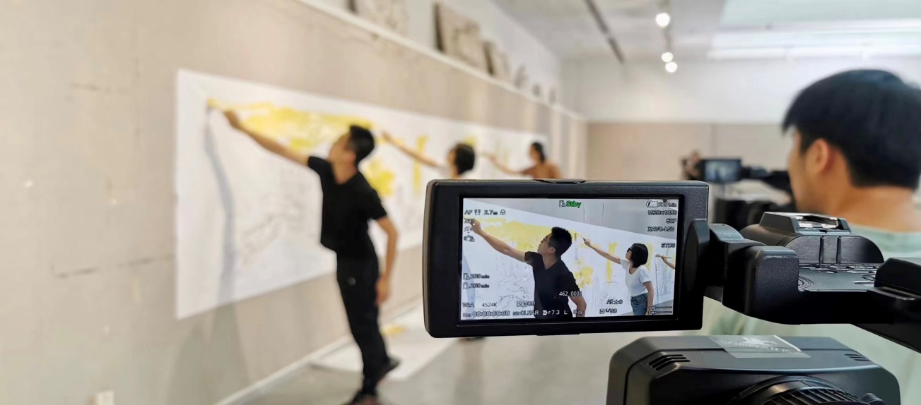 mk(中国)网10月7日电 为庆祝第六个中国农民丰收节,CCTV-17《一路“丰”景》系列直播近日走进mk手机注册美术学院,邀请同学们开展《千里丰收图》接力绘画活动,共同创作一幅丰收长卷画作。本次活动由美术学院党委书记覃川、院长马赛担任总顾问,绘画系主任文中言担任艺术指导,美术学院2020届硕士毕业生温博作为艺术策划,绘画系博士生连培伟进行主题艺术构思,并与王汐月、陈博贤、孙天龙、李款冬等绘画系学生共同绘制,通过8小时挑战,接力创作完成10米长卷,用画笔描绘一路“丰”景。