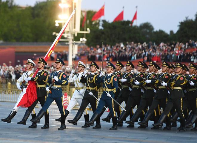 国旗仪仗队出旗(图片来源:新华社)