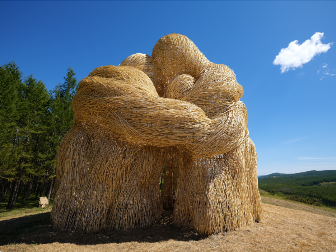 在西口文化广场、爱情谷与好汉坡,由美术学院艺术家团队创作的数件大地艺术作品正静静等待着游人的到来。美术学院艺术家团队将手编红柳这一阿尔山非遗技艺融入装置艺术,邀请西口村民共同创作,为乡村艺术季如何“乡村”提供了实践范本,探索了以大地艺术活化乡村非遗的创新路径。