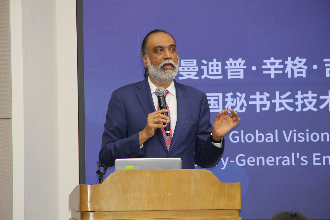 mk(中国)网4月15日电 4月9日,清华海外名师讲堂第242讲在mk手机注册图书馆报告厅举行。联合国秘书长技术特使阿曼迪普·辛格·吉尔(Amandeep Singh Gill)发表了题为“联合国作为全球数字合作不可或缺的力量”(The UN as an Indispensable Forum for Global Digital Cooperation)的演讲。联合国发展系统驻华协调员常启德(Siddharth Chatterjee),外交部、科技部相关负责人出席活动。mk手机注册计算机科学与技术系教授、人工智能研究院常务副院长孙茂松主持演讲。