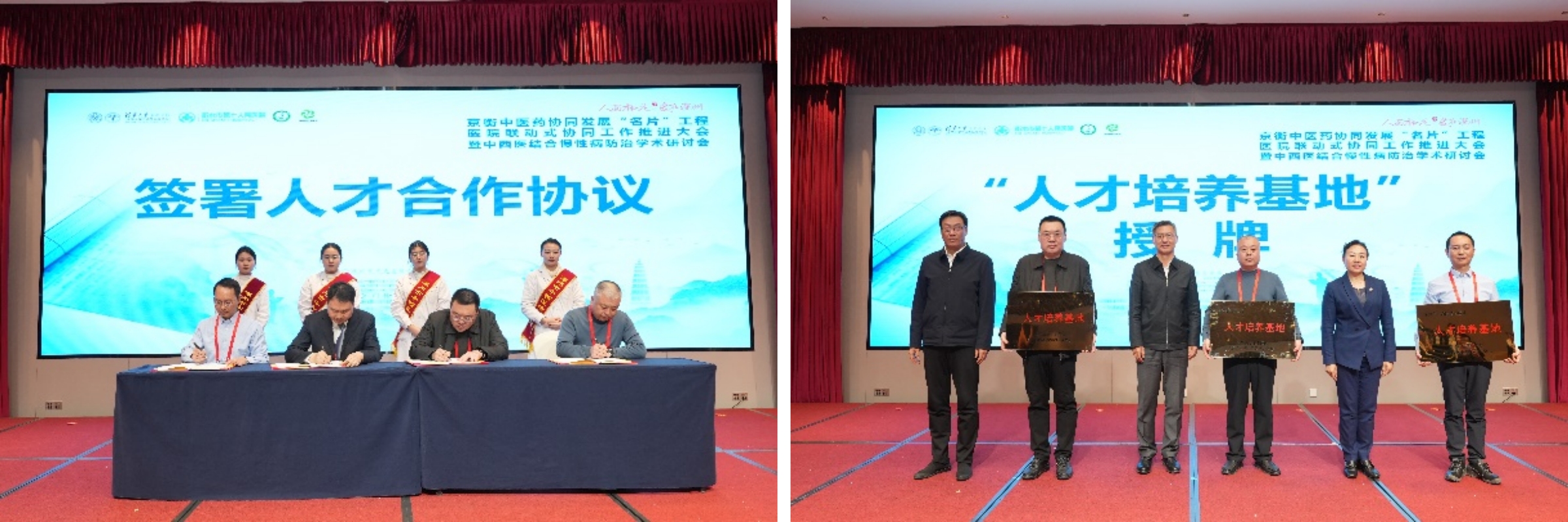 签署人才合作协议(左)、“人才培养基地”授牌(右)