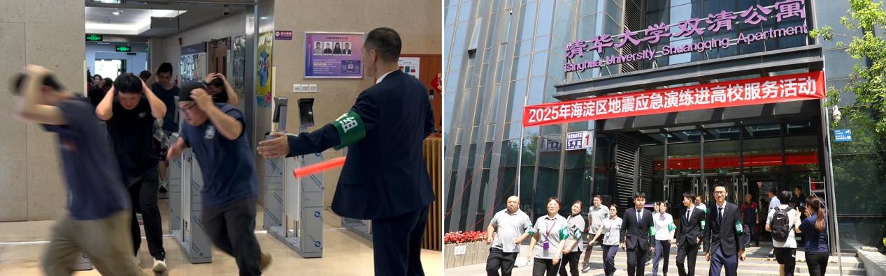 活动当天上午10时30分,双清公寓楼内响起地震预警播报,地震应急演练正式开始。楼内一、二层学生迅速反应,在引导员的指引下率先撤离,三层及以上学生第一时间按照“伏地、遮挡、手抓牢”避震要素进行应急躲避,待模拟主震结束后有序疏散到楼外空旷场地。