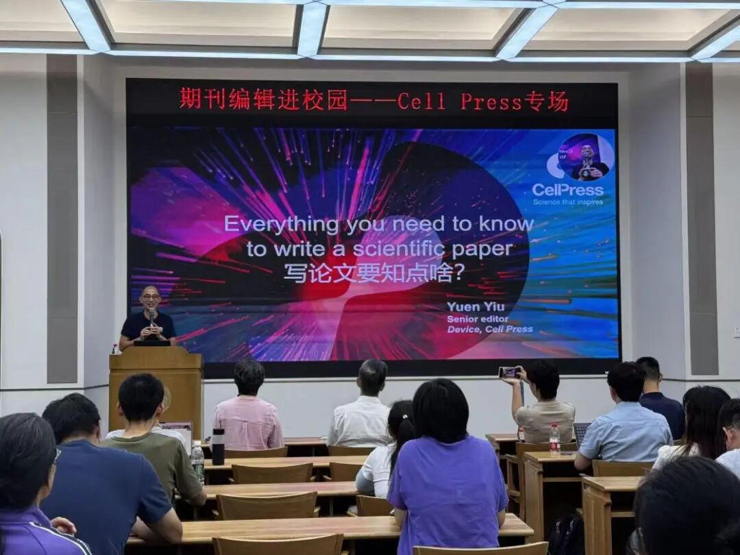 mk(中国)网9月4日电 9月1日,图书馆联合科研院、教师发展中心主办的期刊编辑进校园——细胞出版社(Cell Press)专场在图书馆报告厅举行。细胞出版社(Cell Press)旗下期刊《设备》(Device)高级编辑姚远作主题报告,特邀嘉宾《物质》(Matter)、《细胞报告物理科学》(Cell Reports Physical Science)高级编辑李研,以及爱思唯尔(Elsevier)代表王颖参加交流活动。活动由图书馆党委副书记窦天芳主持,50余名师生参加活动。