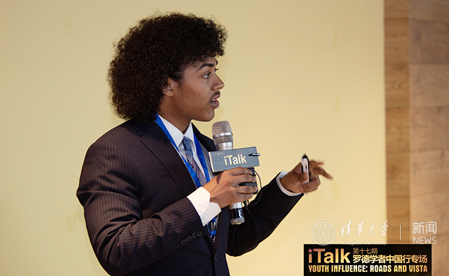 第二位演讲者为2018年罗德奖学金获得者乔丹·托马斯(Jordan Thomas)。乔丹本科毕业于美国的普林斯顿大学,现于牛津大学从事社会政策研究。作为美国少数族裔权益的积极倡导者,他以由权利不平等导致的美国纽瓦克市的衰落为例,对弱势群体的权益问题进行了深入详实的分析。