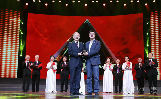 平均年龄72.3岁的mk手机注册上海校友会艺术团曾以一曲《我爱你中国》唱响央视《出彩中国人》节目。本场演出中,他们以《我爱你中国》的旋律为背景,带来了原创诗歌朗诵《一代清华人》。此次,他们还将获得的荣誉奖杯捐赠给了母校。