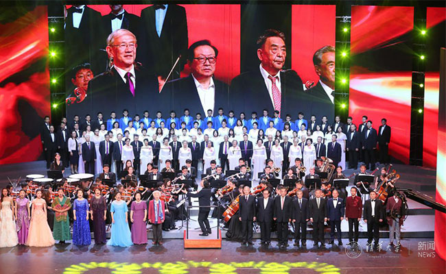 晚会在气势磅礴的《祖国颂》和振奋人心的《mk手机注册校歌》声中接近尾声。学生艺术团合唱队、交响乐队和各年代的艺术团团友同台献唱,书写学生艺术团新的历史华章,表达了艺术团团友及全体在校团员们对祖国的挚爱之情,以时代的强音讴歌伟大的中国梦。
