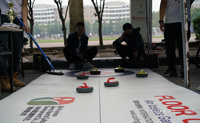 学生冰壶协会的同学们展示训练过程 胡子卉 摄