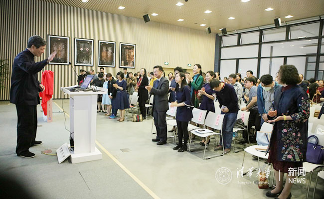 演讲最后,彭林向现场听众鞠躬致意,全场听众同时起立,鞠躬还礼。