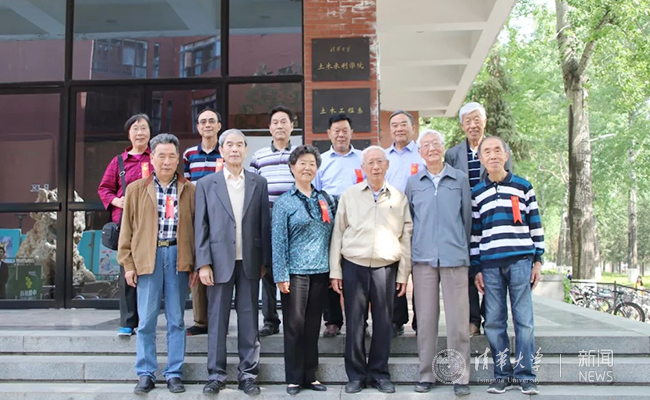 土水学院党委书记方东平、土水学院副院长李克非、土木系主任潘鹏、建设管理系主任吴璟一起看望毕业50周年的老校友。