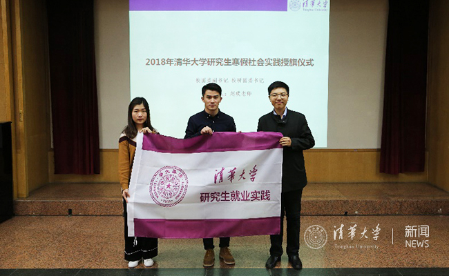最后,赵璞为2018寒假就业实践支队代表和知行计划实践支队长代表授旗。他说,实践之前应当做好充足的计划,带着思考进行实践。他表达了对各位参加实践同学的期望和良好祝愿,希望大家在实践过程中收获满满,让实践成为自己人生中宝贵的记忆。