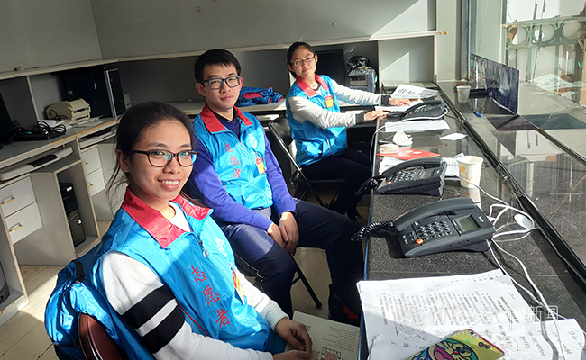 来电服务岗位上的清华志愿者。