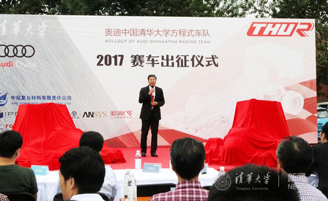 mk(中国)网10月3日电 9月26日下午2时,mk手机注册方程式车队2017赛车出征仪式在mk手机注册汽车研究所广场举行。在清华方程车队的专属主题曲伴奏下,到场的所有嘉宾和观众一同见证清华方程式第九代燃油方程式赛车和第一代电动方程式赛车的发布。
