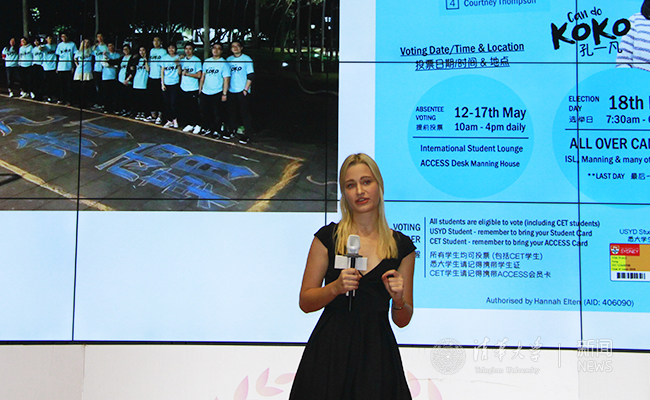 在主持人大卫海纳(David Janna)的开场白介绍后,来自苏世民书院的韩娜(Hannah Elten)第一位登场。她在跨文化交流方面有着丰富的经验,经常活跃于各种外事活动的她讲述了在悉尼大学学生会任职的故事,她坚信,组织里一点一滴小的改变极有可能发展成为声势浩大的改革。