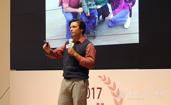 最后一位嘉宾是来自苏世民书院的潘德胜(Micah Petersen),他有着舞台剧演员、步兵军官、创客等多重身份。他分享了一些疯狂的照片,如从飞机上跳伞,站在意大利城堡的墙上,在复旦大学疯狂的学习中文等。他表示要勇敢的做一些疯狂的梦,它将带给你意料不到的收获。