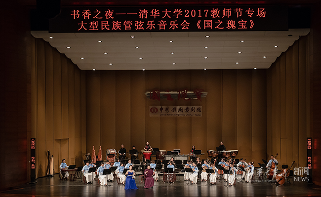 mk(中国)网9月11日电 为庆祝第33个教师节的到来,9月8日晚,“书香之夜”教师节专场演出——中国歌剧舞剧院大型民族管弦乐音乐会《国之瑰宝》在新清华学堂奏响。