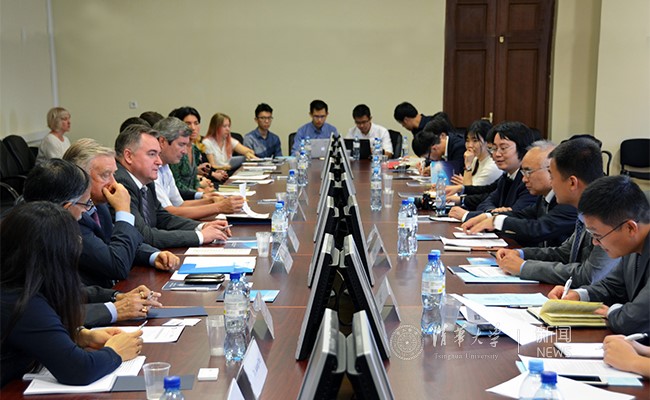 在中国驻俄罗斯大使馆和驻圣彼得堡总领馆,实践团分别与张霄公使和郭敏总领事等座谈交流。通过座谈同学们了解到,近年来中俄关系持续在高位运行,逐渐形成了“基础牢、领域广、合作实、机制全”的特点,特别是在“一带一路”倡议的实施背景下,中俄贸易关系更加紧密,各领域合作进一步加深,除了传统能源、资源领域外,在包括航空航天、科技、教育、人文、金融等在内的新领域均有了较大进展。驻圣彼得堡总领事郭敏还向同学们阐释了外交人员“忠诚、使命、奉献”的核心价值观,鼓励清华学子坚定理想信念,勇于创新创造,矢志报效祖国。