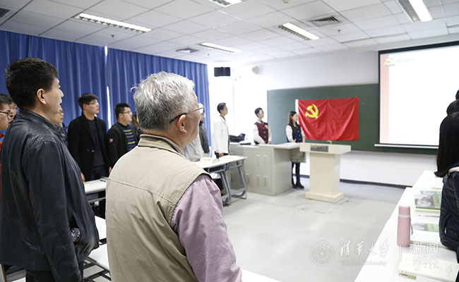 工物系师生与钱锡康、周明胜、马兰花开党支部部分成员面向党旗宣誓。 韩霄 摄