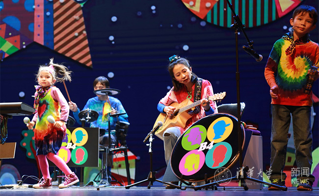 来自美国的物理系教师毕楷杰(MichaelBisset)携全家组成跨国家庭乐队,给大家带来了令人耳目一新的乐队演奏。来自美国的外文系教师布雷德利·米茨(Bradley Meads)高亢的独唱《感谢》获得全场热烈欢呼。