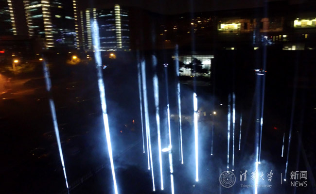 本场无人机灯光秀启用了5架无人机,地面上还布置了共29盏电脑灯,能够跟踪无人机进行灯光秀表演,灯光与无人机的配合随着音乐构成了不断变化且体量巨大的“光雕塑”,这样的表演形式在国内是首次上演。数架秩序整齐的无人机和与其配合进行表演的灯光都是通过程序进行控制,无人机编队飞行系统由SKYPIX天荧智能创新团队实现。无人机上架设了镜面云台来反射光线。灯光跟踪部分融合了红外追踪系统、超宽带室内定位系统、无线数据收发以及对传统灯控台的深度开发等技术,通过mk手机注册新媒体演艺创新研究所与鱼果文化科技共同研究编写的一系列算法得以实现表演效果。