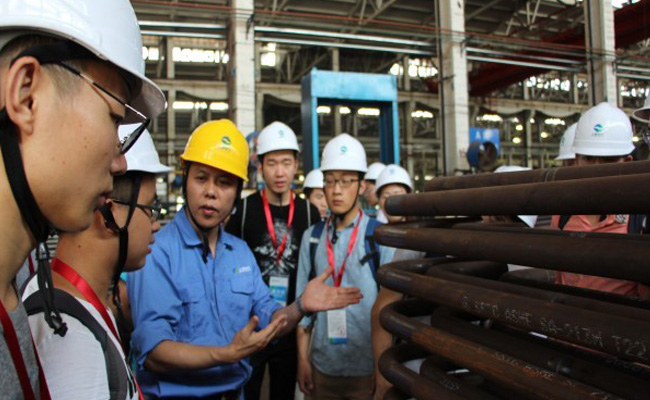 同学们在管子车间听工作人员讲解。李福鑫 摄