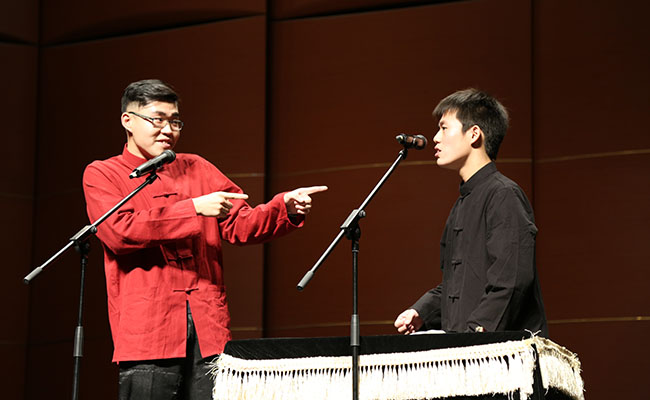 曲艺队队员表演相声《动画漫谈》。蒋乐源 摄