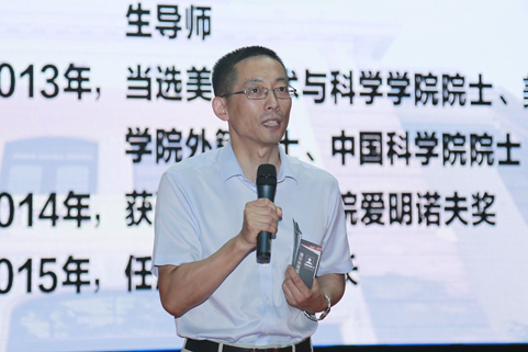 施一公与在座新生分享自己在学生时代如何与体育运动结缘,并坚持锻炼的故事。记者 张 宇 摄