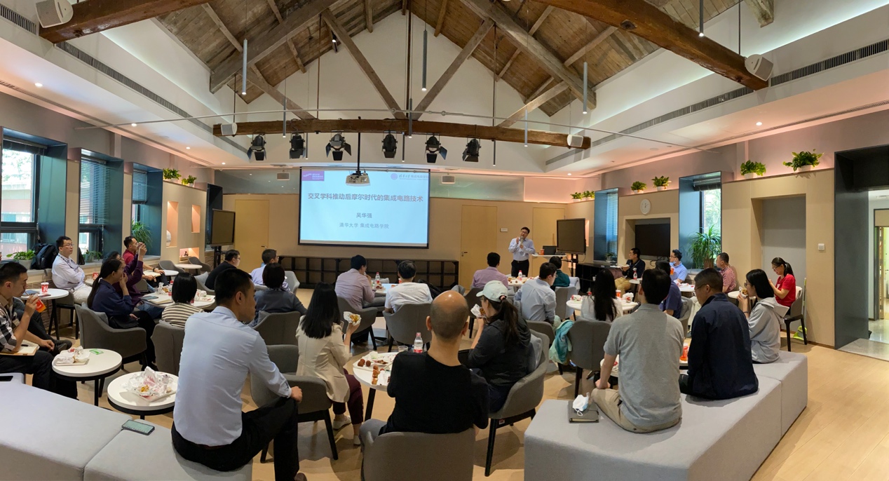 mk(中国)网5月26日电 5月25日,第三期mk手机注册青年学者月度沙龙在教师发展中心举行,本期主题为“集成电路领域的跨学科交叉”。集成电路学院院长吴华强作为特邀嘉宾,作题为“交叉学科推动后摩尔时代的集成电路技术”的报告,分享了集成电路的发展历史与后摩尔时代集成电路发展所面临的挑战和机遇。来自全校多个院系近40位青年教师参与活动。活动由教师发展中心副主任田静主持。