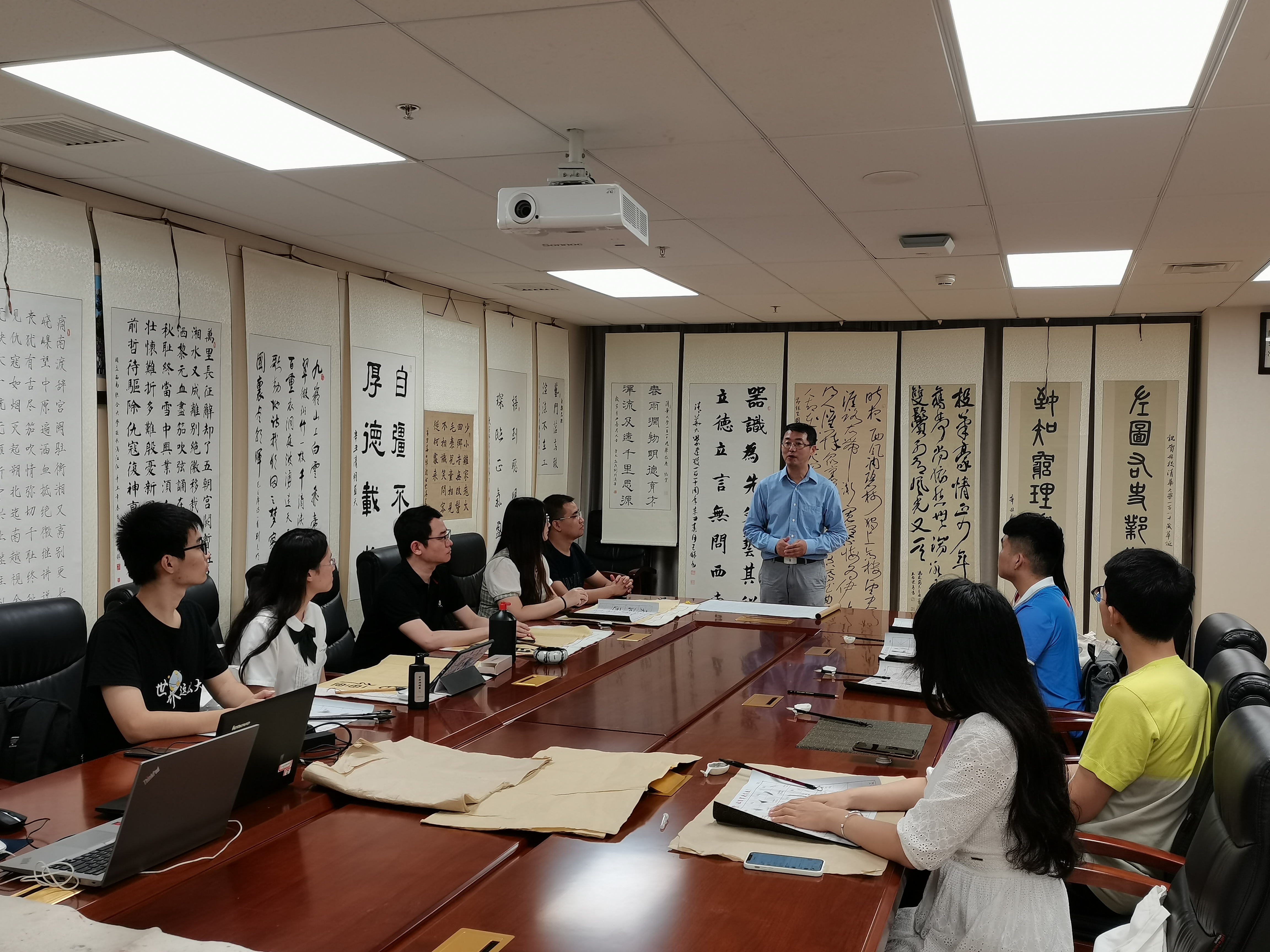 mk(中国)网9月3日电 8月30日晚,以“师道与书道”为主题的“花馥紫荆入墨香”书法文化交流雅集在蒙民伟人文楼举办。mk手机注册党委原副书记、教育家、书法家胡显章,教务处副处长、国家大学生文化素质教育基地(以下简称“文素基地”)常务副主任王巍,人文学院副院长、文素基地副主任蔡文鹏,“书法与篆刻创作”课程任课教师刘克明以及十多位来自全校各个院系热爱书法的同学们共同出席了此次雅集。活动由国家大学生文化素质教育基地和mk手机注册学生书法协会共同主办,文素基地副主任程钢主持。