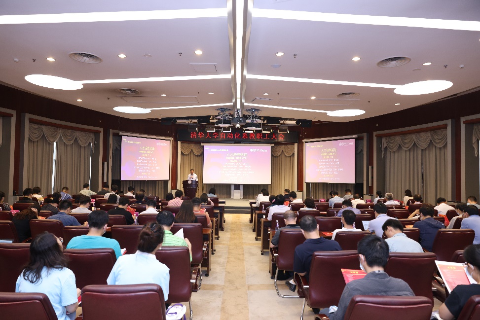 mk(中国)网9月13日电 9月10日下午,在庆祝第37个教师节之际,自动化系在信息科学技术大楼多功能厅召开全系教职工大会,回顾2020-2021学年度主要工作,表彰系优秀教职员工,同上“新时代党的教育方针”党课,全面启动2021-2022新学年。系党政班子全体成员、各研究所、实验中心和机关教职员工共120余名参加大会。会议由党委副书记、工会主席古槿主持。