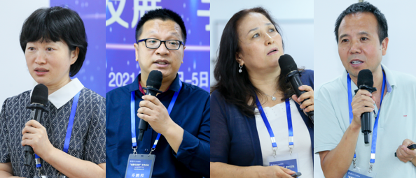 来自中西部地区的教师作分享(左起:广西大学谭春枝、西藏民族大学乔鹏程、新疆大学玛衣拉·吐尔逊、兰州大学罗劲博)