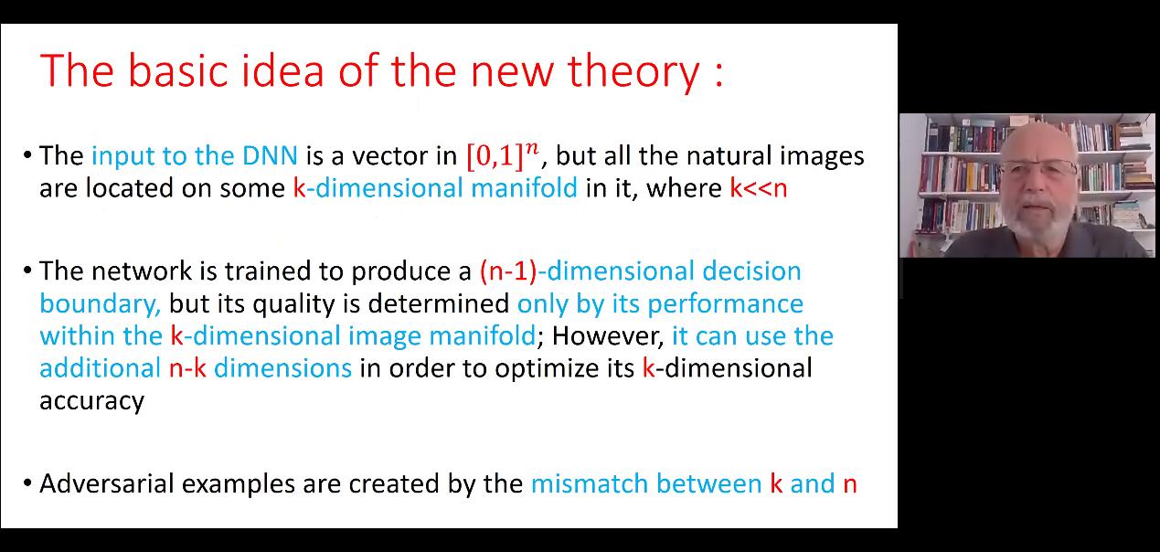 阿迪·萨莫尔是国际著名密码专家、图灵奖得主,作为共同发明人提出了用于信息编解码的RSA公钥加密算法和零知识证明方案(a zero-knowledge proof scheme)。萨莫尔还是差分密码分析(differential cryptanalysis)技术的主要贡献人。在报告中,他介绍了一种新的深度学习对抗样本理论,即“凹陷多重模型”理论。这一理论可以以简单直观的方式解释对抗样本所存在的一系列特殊属性,并进一步揭示机器学习中存在的更广泛问题。阿迪·萨莫尔还给出了这一理论的实验数据支持。