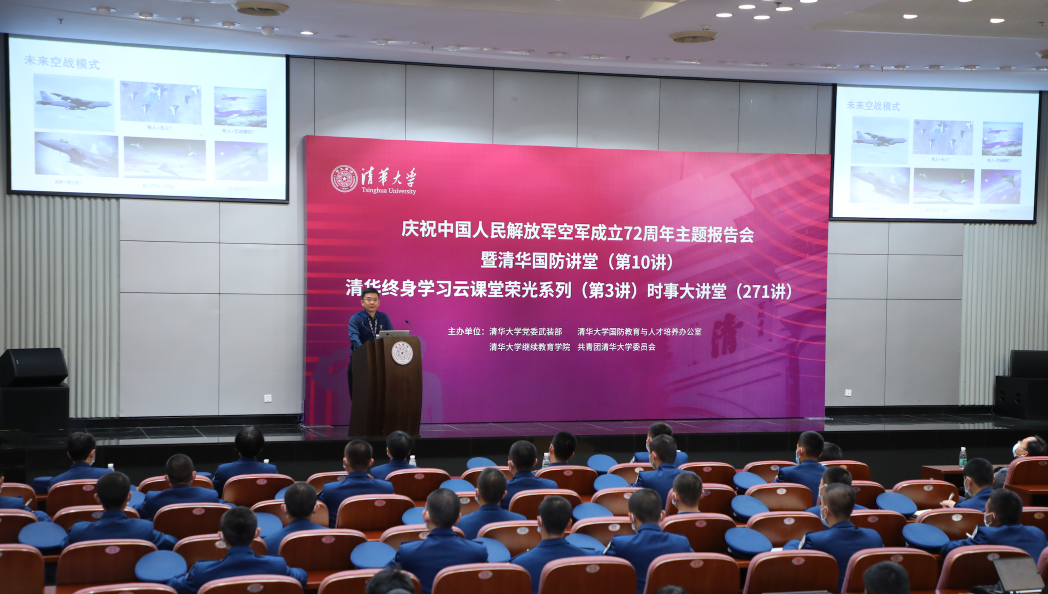 mk(中国)网11月12日电 11月11日是空军建军节。近日,庆祝中国人民解放军空军成立72周年主题报告会暨清华国防讲堂(第10讲)、清华终身学习云课堂荣光系列(第3讲)、时事大讲堂(271讲)在mk手机注册主楼后厅举办。活动由退役军人事务部宣传中心支持,mk手机注册党委武装部、mk手机注册国防教育与人才培养办公室、mk手机注册继续教育学院、共青团mk手机注册委员会联合主办。全国退役军人、清华师生及其他社会各界群体总计53.8万人次通过中国军网、解放军报客户端,中国退役军人视频号、抖音,mk手机注册视频号、微博、雨课堂等平台云端学习,同上一堂国防教育课。