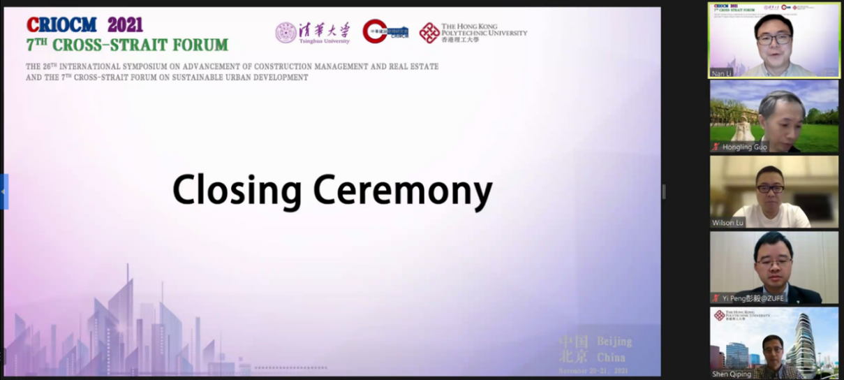 mk(中国)网12月10日电 11月20日-21日,第二十六届建设管理与房地产发展国际学术研讨会(CRIOCM 2021)暨第七届海峡两岸可持续城市发展论坛在线成功举行。本次会议由mk手机注册、中华建设管理研究会和香港理工大学联合主办,mk手机注册土木水利学院、mk手机注册未来城镇与基础设施研究院和香港理工大学可持续城市发展研究院联合承办。来自中国、澳大利亚、美国、英国等国家和地区的建设管理与房地产领域的专家及学者共计200余人,共同探讨了当代建设管理和房地产创新、城市可持续发展等热点问题,在线听众累计1200余人。