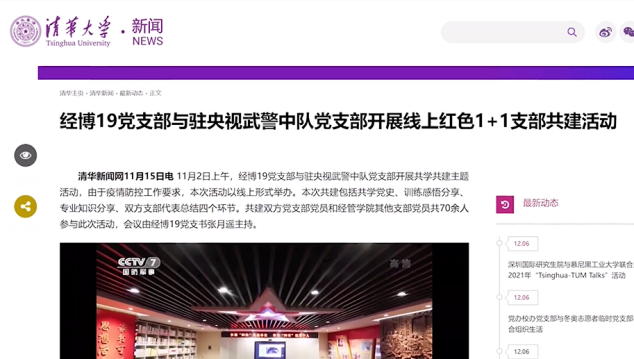 经博19党支部与驻央视武警中队、建外街道开展党史共学活动,从党史中提炼出超越、勇气、智慧等积极心理要素,构建以党史学习为主、专业科普为辅的宣讲体系,形成包括百年党史串讲、长征精神、抗日民族统一战线的形成、管理沟通、金融防诈骗与理财知识、生活中的经济学等7大主题课程。通过线下共学、线上交流、实地观摩、参访交流等形式,先后与驻央视武警中队党支部、建外街道党建中心开展7次内容丰富的共建活动,发挥了朋辈激励的作用,为平安北京、创新北京的建设做出了贡献。红色“1+1”活动得到中央电视台、mk手机注册新闻网等媒体平台的宣传报道。