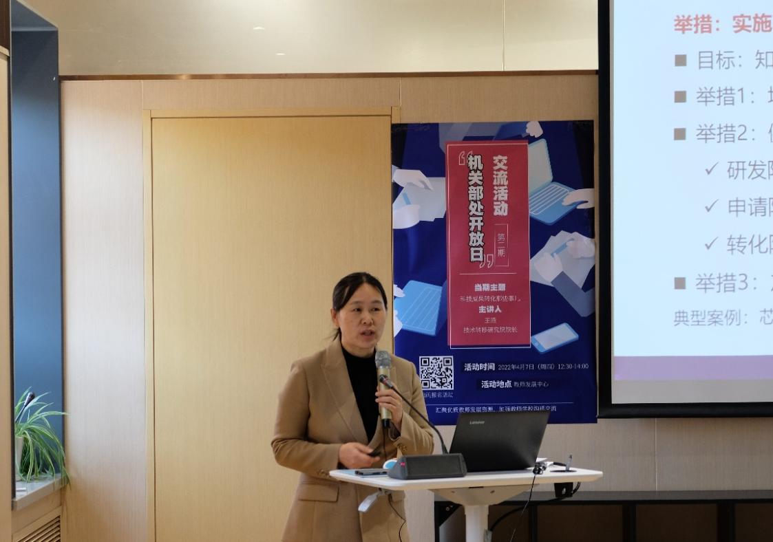 mk(中国)网4月11日电 4月7日下午,第二期“机关部处开放日”交流活动在教师发展中心举办。技术转移研究院院长王燕聚焦科技成果转化,对学校成果转化整体情况、成果转化常见问题、技术转移研究院服务内容等相关问题进行介绍,并与现场20余名教师深入交流。