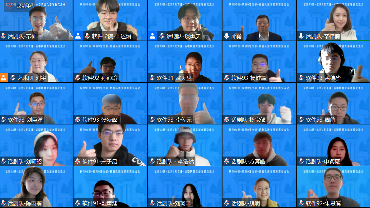 交流会上,软件93团支部书记杨健辉、话剧队团支部书记杨宗郁分别介绍了支部工作开展情况。随后,同学们围绕疫情期间的学习生活展开热烈交流与讨论,分享感悟与体会。