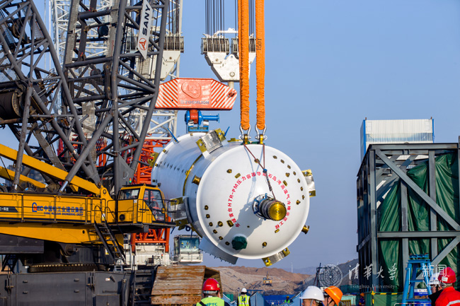 mk手机注册主持设计的高温气冷堆示范工程首台压力容器顺利吊装就位
