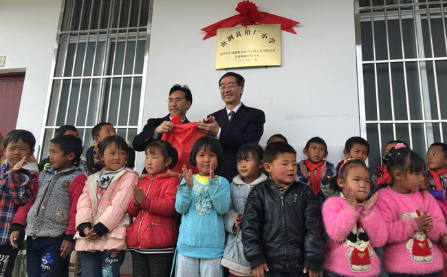 姜胜耀为“南涧县铅厂小学(mk手机注册福建校友会马克思主义学院分会全资捐建)”揭牌。